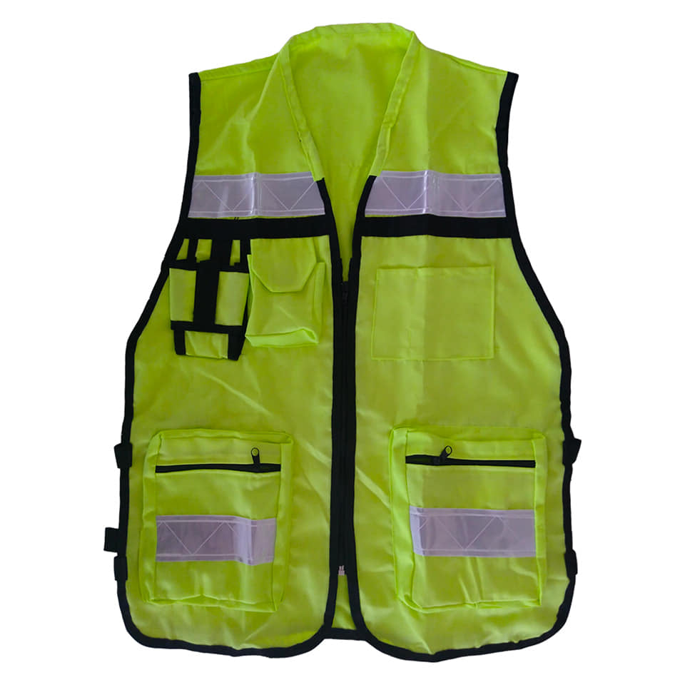 Chaleco Brigadista Reflejante en tela Gabardina Algodón Poliéster con bolsas Unitalla Ajustable.