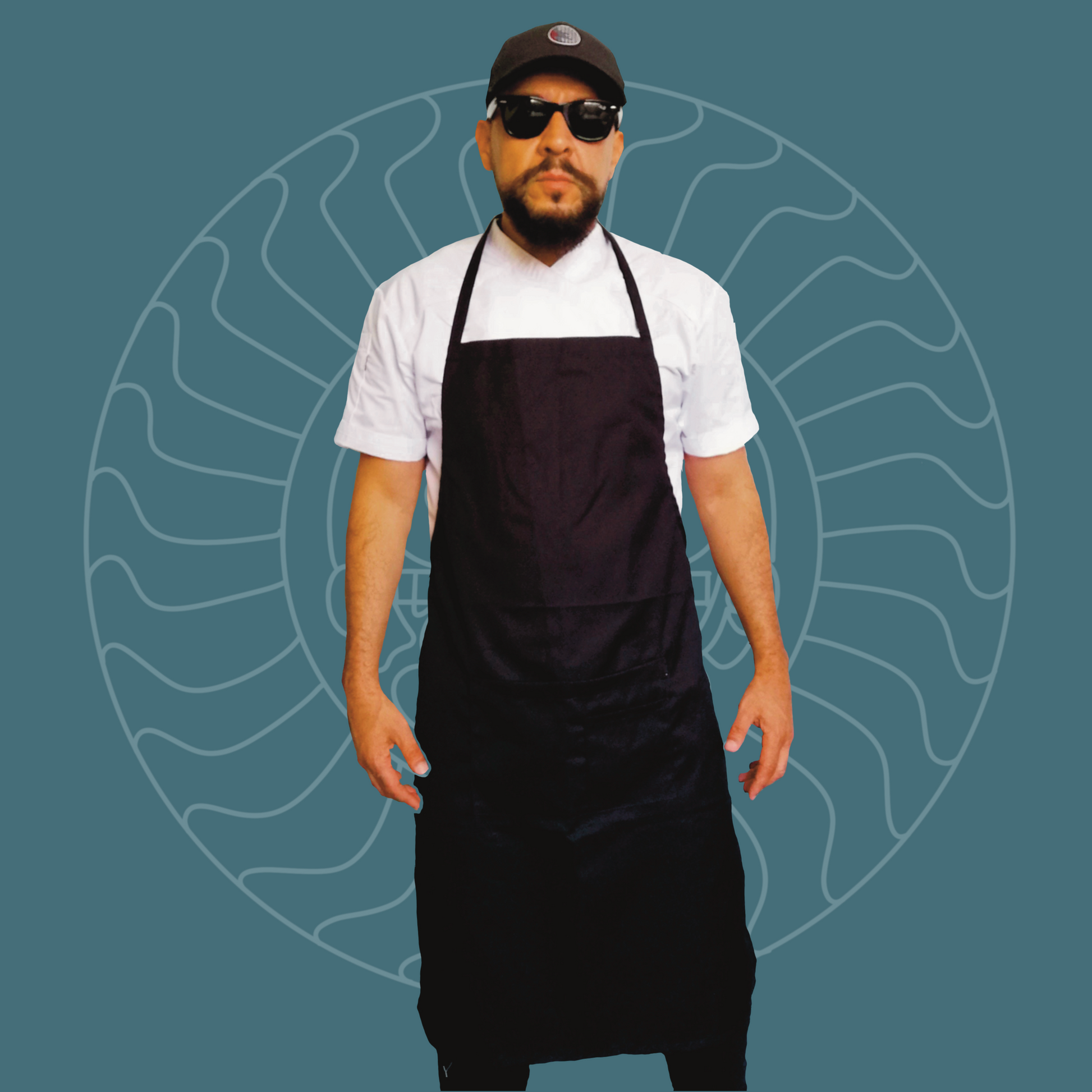 Mandil Negro Tela Gabardina Algodón Poliéster con Bolsas al frente. De 70 cms de largo.