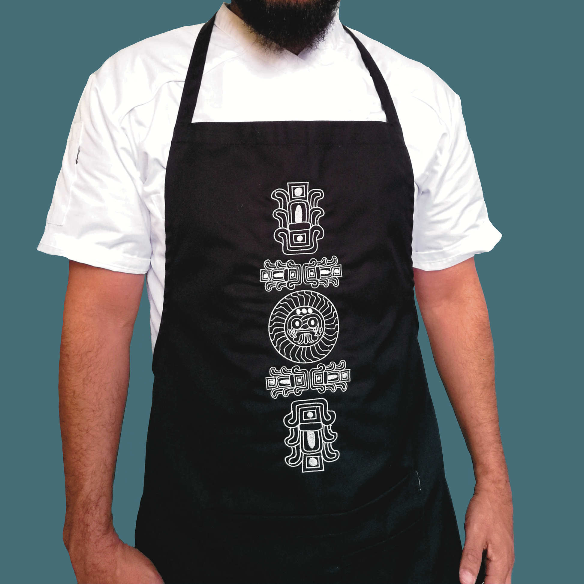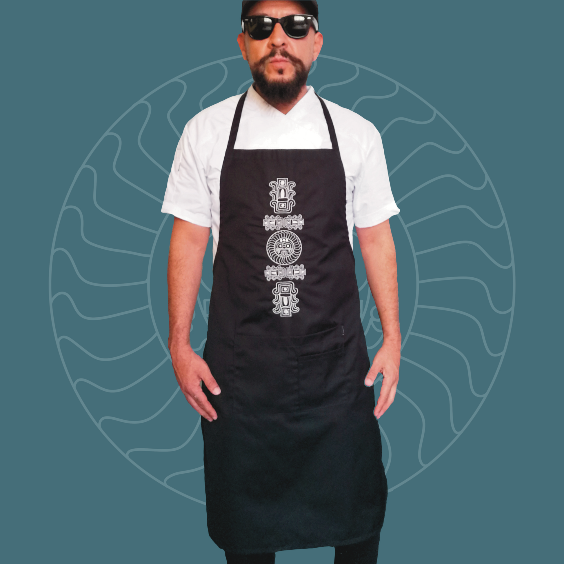 Mandil Negro Tela Gabardina Algodón Poliéster con Bolsas al frente. De 70 cms de largo.