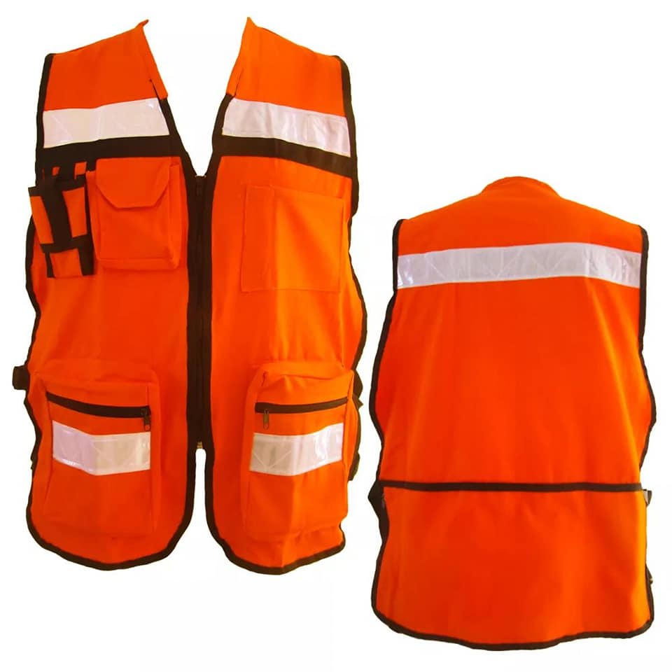 Chaleco Brigadista Reflejante en tela Gabardina Algodón Poliéster con bolsas Unitalla Ajustable.