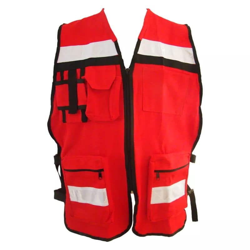 Chaleco Brigadista Reflejante en tela Gabardina Algodón Poliéster con bolsas Unitalla Ajustable.